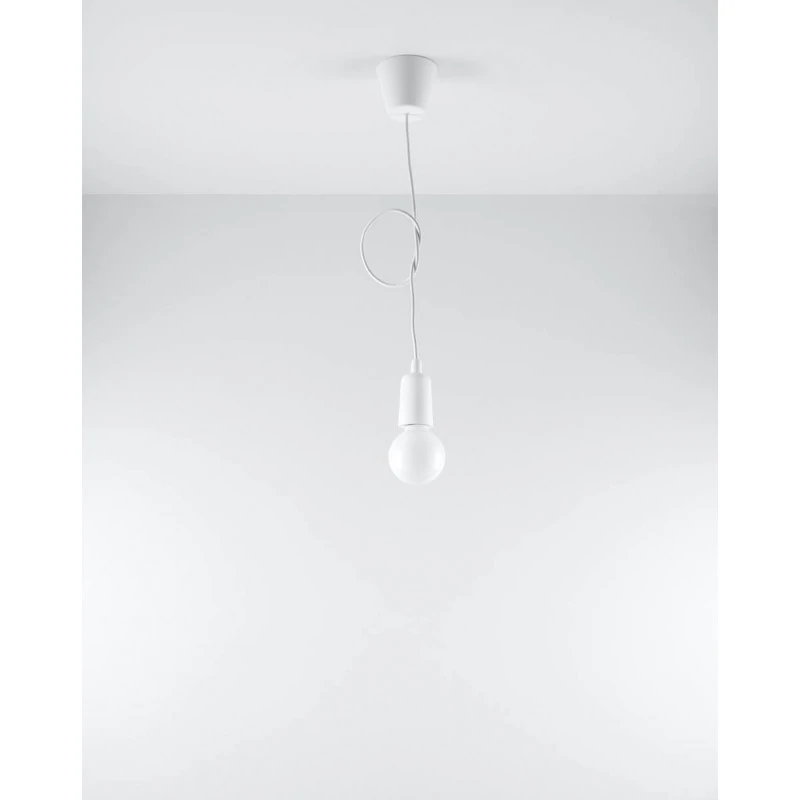Lampa wisząca DIEGO polskiego producenta SOLLUX to prosta oprawa oświetleniowa z twrzywa sztucznego przeznaczona na żarówkę E27. Do oprawy pasują żarówki o mocy do 60W (15W LED). Brak źródła światła w zestawie. Maksymalna długość oprawy to 90 cm, a średnica podsufitki oprawy to 9cm. Model dostępy w wielu modnych kolorach. Piękna prostota opraw DIEGO to doskonałe oświetlenie pomieszczeń oraz minimalizm w najczystszej postaci. Produkt objęty gwarancją producenta.