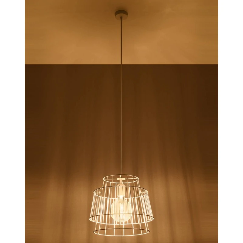 Biała lampa wisząca Gate marki Sollux lighting z geometrycznym kloszem to nowoczesne oświetlenie naszego salonu, przedpokoju czy jadalni. Lampa sufitowa dostępna jest w dwóch klasycznych kolorach. Dzięki wymiennym źródłom światła o gwincie E27 dobierzemy odpowiednią do naszych oczekiwań moc i barwę światła. Pamiętajmy, że żarówka nie została dołączona do zestawu. Rozproszone światło stworzy nam wyjątkową aranżację w naszym wnętrzu. Regulowane zwiesie pozwoli nam zawiesić oświetlenie sufitowe na optymalnej dla nas wysokości. Polski produkt objęty 5-letnią gwarancją producenta.