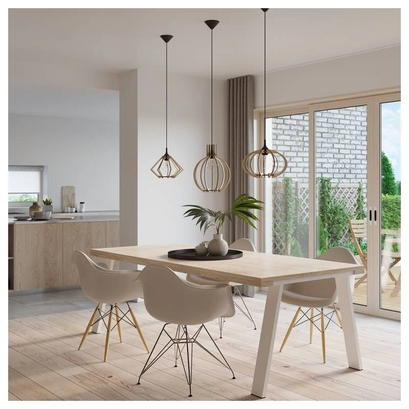 Lampa wisząca Mandelino marki Sollux lighting to nowoczesne oświetlenie naszego wnętrza. Lampa sufitowa posiadająca drewniany klosz stanie się piękną ozdobą w salonie czy nad jadalnianym stołem. Dzięki wymiennym źródłom światła o gwincie E27 możemy dobrać odpowiednią do naszych oczekiwań moc i barwę światła. Pamiętajmy, że żarówka nie została dołączona do zestawu. Regulowane zawiesie pozwoli nam zawiesić lampę sufitową na odpowiedniej wysokości. Łatwa w utrzymaniu czystości i posiadająca natynkowy system montażowy to zalety lampy wiszącej Mandelino. Produkt polski objęty 5-letnią gwarancją producenta.