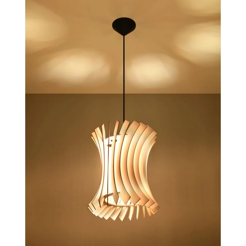 Lampa wisząca Oriana marki Sollux lighting to ciekawe, oryginalne i nowoczesne oświetlenie naszego wnętrza. Drewniany klosz lampy sufitowej i światło, które się pięknie z niego rozproszy stworzą nam cudowną aranżację. Dzięki wymiennym źródłom światła o gwincie E27 dobierzemy odpowiednią do naszych oczekiwań moc i barwę światła. Pamiętajmy, że żarówka nie została dołączona do zestawu. Lampa wisząca jest łatwa w utrzymaniu czystości, bo wystarczy przetrzeć ją ściereczką. Oświetlenie sufitowe posiada regulowane zawiesie, więc zawiesimy go na dowolnej wysokości. Piękna ozdoba nie tylko nad jadalnianym stołem, ale również w salonie stanie się wyjątkową ozdobą. Polski produkt objęty 5-letnią gwarancją.