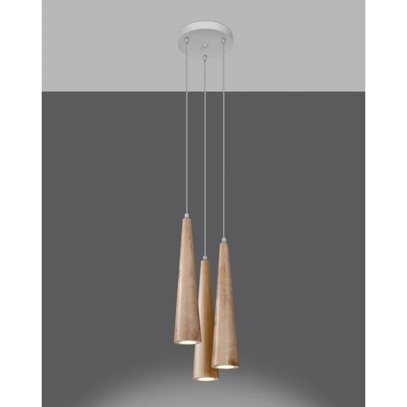 Lampa wisząca Sula 3P marki Sollux lighting to eleganckie i nowoczesne oświetlenie w naszym salonie, gabinecie czy w jadalni. Lampa sufitowa dostępna jest z 1 bądź 3 punktami świetlnymi. Wąskie i drewniane klosze w oświetleniu sufitowym nadadzą naszemu wnętrzu charakter i staną się w nim piękną i wyjątkową ozdobą. Wymienne źródła światła o gwincie GU10 dadzą nam możliwość doboru odpowiedniej do naszych oczekiwań mocy i barwy światła. Pamiętajmy, że żarówki nie są dołączone do zestawu. Lampa wisząca Sula 3P jest łatwa w utrzymaniu czystości. Polski produkt objęty 5-letnią gwarancją.