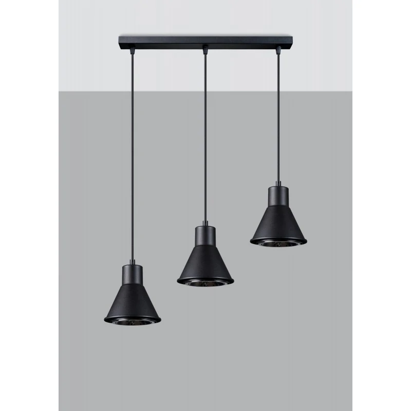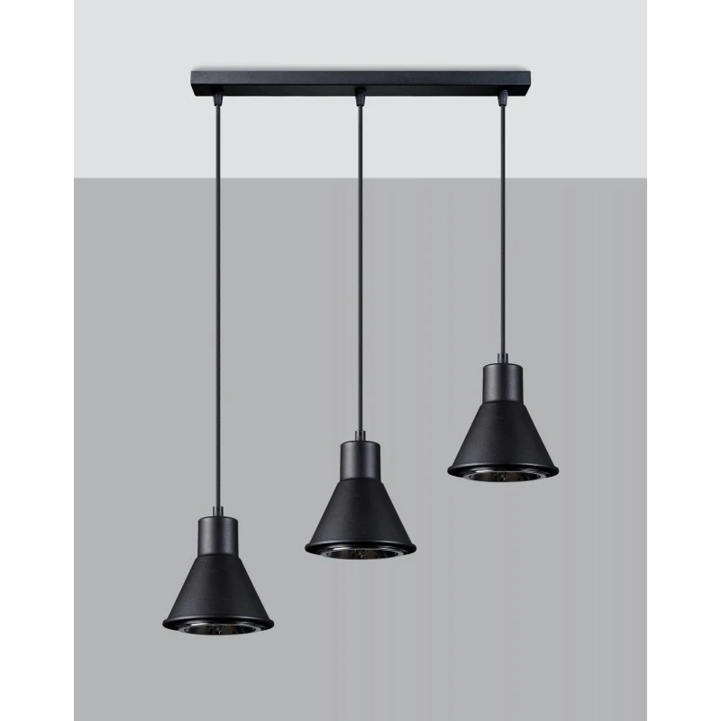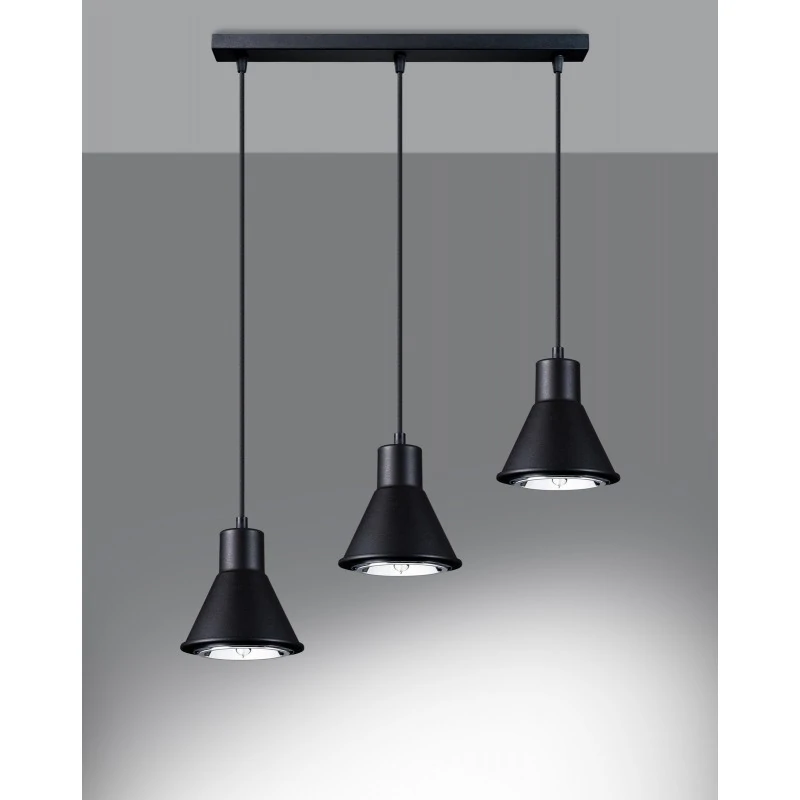 Czarna lampa sufitowa Tazila marki Sollux lighting to piękne i nowoczesne oświetlenie naszego wnętrza. Oświetlenie dostępne jest w dwóch klasycznych kolorach i w dwóch wersjach: z 1 bądź 3 kloszami. Lampa sufitowa to wyjątkowa i ciekawa dekoracja, w której dopasujemy moc i barwę oświetlenia dzięki wymiennym źródłom światła o gwincie Gu10. Pamiętajmy, że żarówki nie zostały dołączone do zestawu. Klosze lampy zawieszone są na różnych wysokościach. Oświetlenie sufitowe wykonane zostało ze stali, utrzymanie w czystości jest łatwe, bo wystarczy przetrzeć ściereczką. Polski produkt objęty 5-letnią gwarancją.