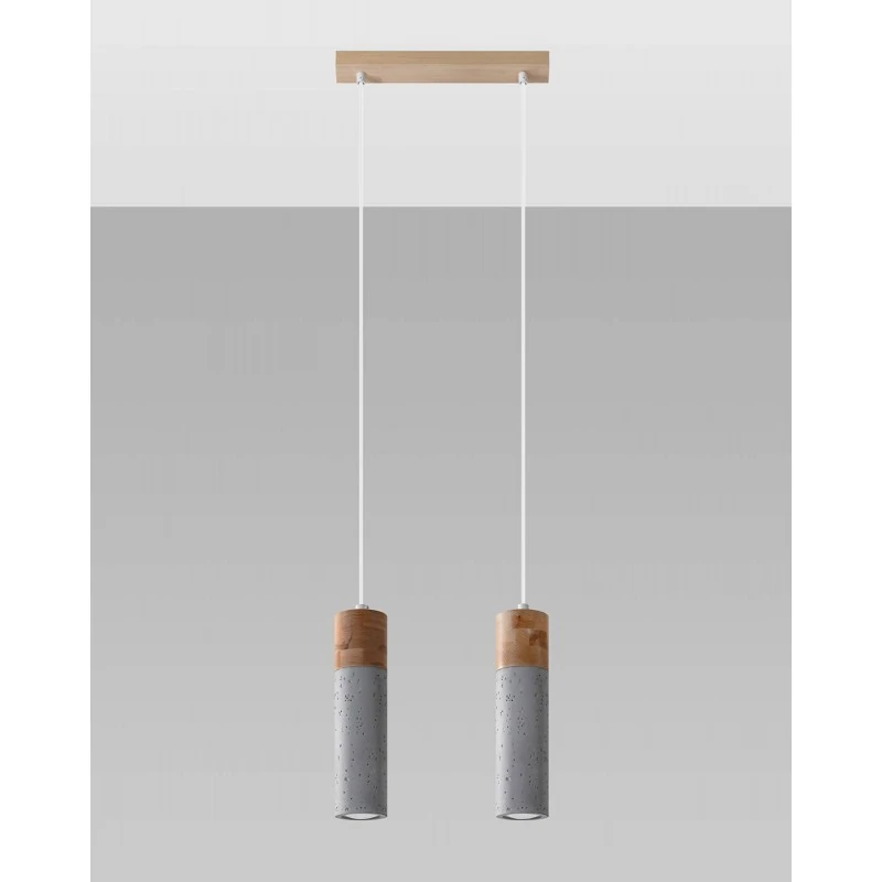 Lampa wisząca Zane marki Sollux lighting to piękne i podłużne tuby, czyli wyjątkowa ozdoba w naszym salonie czy w jadalni. Połączenie betonu z naturalnym drewnem w oświetleniu sufitowym to ciekawe rozwiązanie dla naszego wnętrza. Dzięki regulowanym przewodom lampa sufitowa zawiśnie na dowolnej długości. Dostępna jest w trzech wersjach: z 1,2 bądź 3 punktami świetlnymi. Wymienne źródła światła o gwincie Gu10 pozwolą nam dobrać do naszych oczekiwań moc i barwę światła. Pamiętajmy, że żarówki nie zostały dołączone do zestawu. Lampa sufitowa to polski produkt z 5-letnią gwarancją producenta.