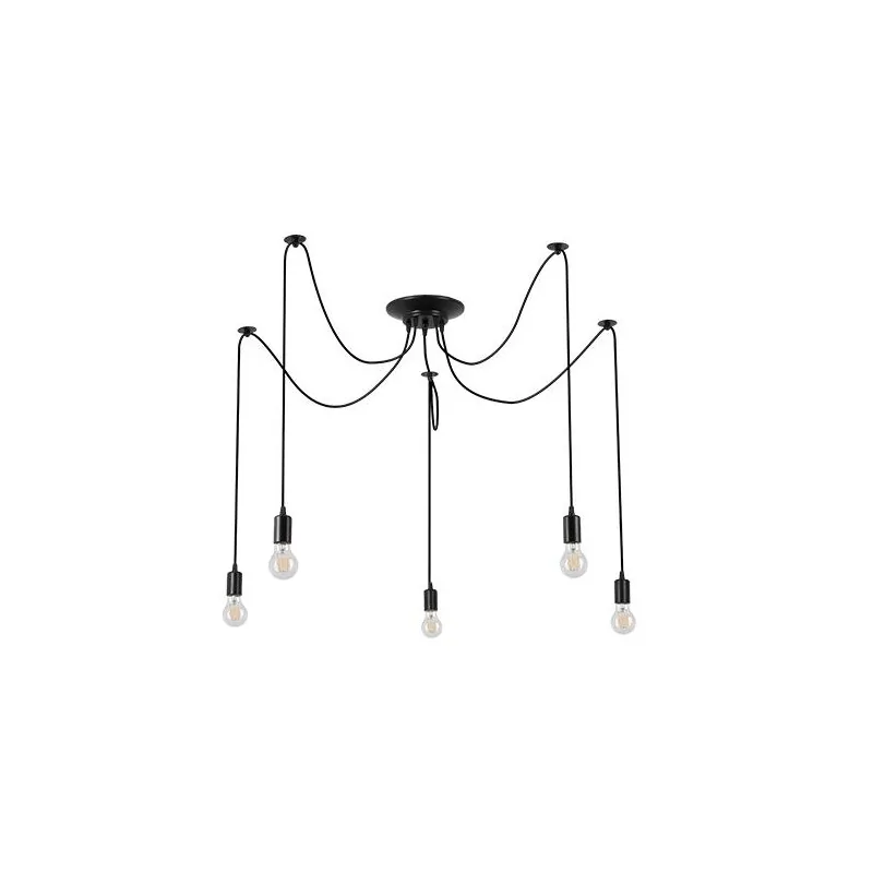 Nowoczesne oświetlenie sufitowe Nido marki LVT typu pająk nie tylko wyjątkowo rozświetli nasz salon czy jadalnie, ale stanie się również cudowną ozdobą w wybranym wnętrzu. Dzięki wymiennym źródłom światła o gwincie E27 dobierzemy odpowiednią do naszych oczekiwań barwę światła oraz maksymalną moc 5x35W. Pamiętajmy, że żarówki nie znajdują się w zestawie. Oświetlenie sufitowe wykonane zostało z dobrej jakości materiału. Regulowane zawiesie pozwoli, aby lampa sufitowa zawisła na takiej długości jaką chcemy mieć.