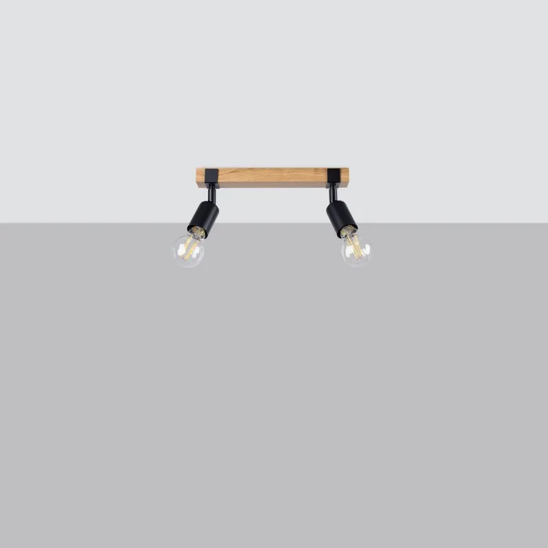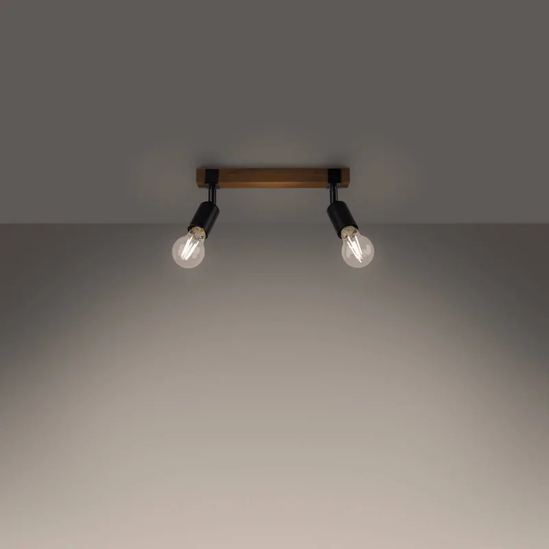 Czarny plafon Zuca marki Sollux lighting to nowoczesne, ciekawe i wyjątkowe oświetlenie w salonie, pokoju, przedpokoju czy jadalni. Oświetlenie sufitowe posiada ruchome klosze oraz wymienne źródła światła o gwincie E27. Dobrać więc możemy odpowiednią barwę światła do naszych oczekiwań oraz maksymalną moc 2x15W. Pamiętajmy, że żarówki nie znajdują się w zestawie. W serii Zuca znajdziemy kinkiet oraz plafon z 3 lub 4 źródłami światła. Plafon wykonany został z dobrej jakości materiałów, połączenie stali i drewna nada charakter naszemu wnętrzu, jak również stworzy przytulną atmosferę. Oświetlenie sufitowe to polski produkt objęty 5-letnią gwarancją.