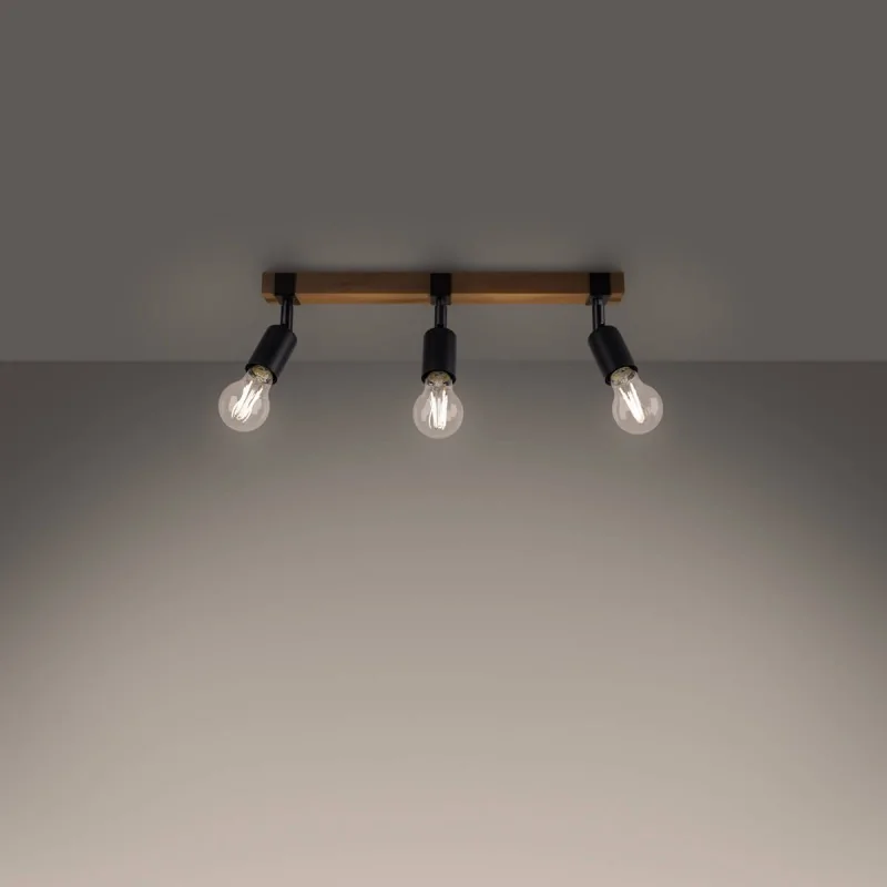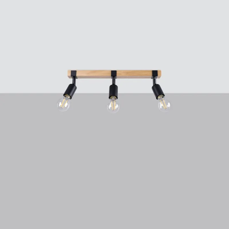 Czarny plafon Zuca marki Sollux lighting to wyjątkowe i nowoczesne oświetlenie w naszym wnętrzu. Lampa sufitowa posiada wymienne źródła światła o gwincie E27, więc dobierzemy do naszych oczekiwań nie tylko odpowiednią barwę światła, ale również maksymalną moc 3x15W. Pamiętajmy, że żarówki nie znajdują się w zestawie. Oświetlenie sufitowe wykonane zostało z dobrej jakości materiałów, a połączenie stali i drewna nie tylko ociepli nasze wnętrze, ale nada mu również charakter. W serii Zuca znajdziemy również kinkiet oraz plafon z 2 lub 4 źródłami światła. Ruchome klosze w plafonie nie tylko skierują wiązkę światła w miejsce, które chcemy oświetlić, ale staną się jego cudowną ozdobą. Polski produkt objęty 5-letnią gwarancją producenta.
