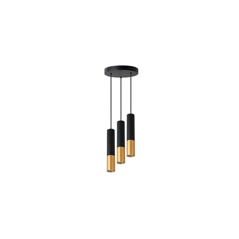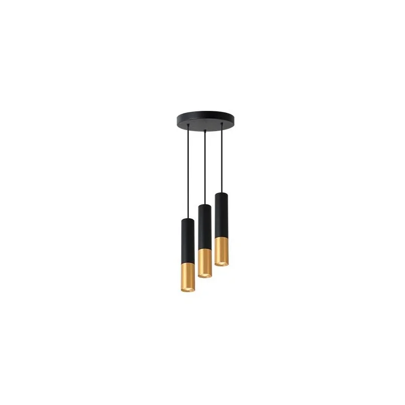 Czarno-złota, okrągła lampa sufitowa Keon marki LVT to nowoczesne oświetlenie w salonie, sypialni czy jadalni. Oświetlenie, które nie tylko rozświetli nam wybrane wnętrze, ale stanie się jego ozdobą. Lampa wisząca dostępna jest w dwóch wersjach kolorystycznych. Dzięki wymiennym źródłom światła o gwincie GU10 dobierzemy odpowiednią barwę światła oraz maksymalną moc 3x35W. Pamiętajmy, że żarówki nie znajdują się w zestawie. Lampa sufitowa posiada regulowane zawiesie, a w serii Keon znajdziemy oświetlenie sufitowe z 1,2 bądź 4 źródłami światła. Do zestawu dołączono gniazdo GU10, kołki montażowe, oprawę oraz instrukcję montażu.
