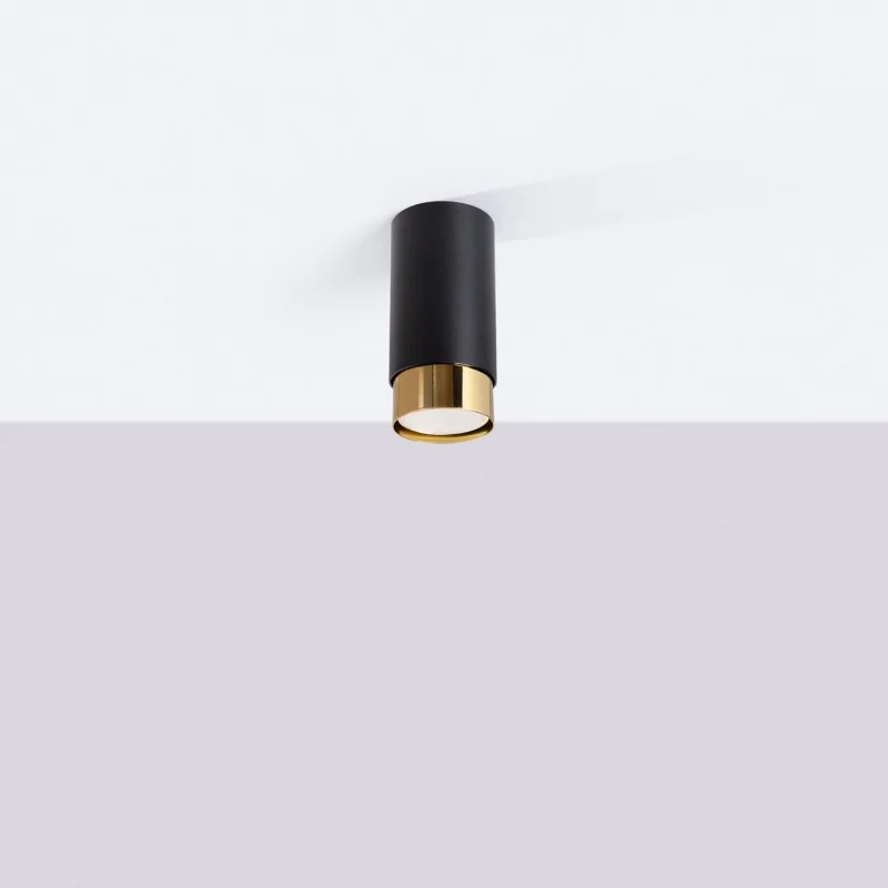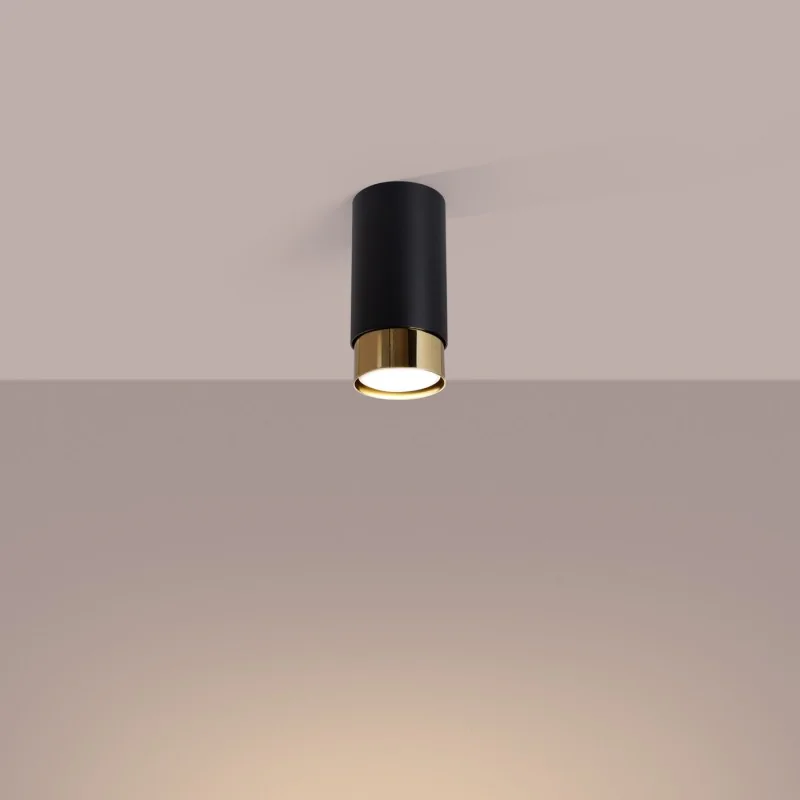 Oprawa na sufit punktowa Gu10 tuba NERO 12,5 czarno złota Sollux SL.1410