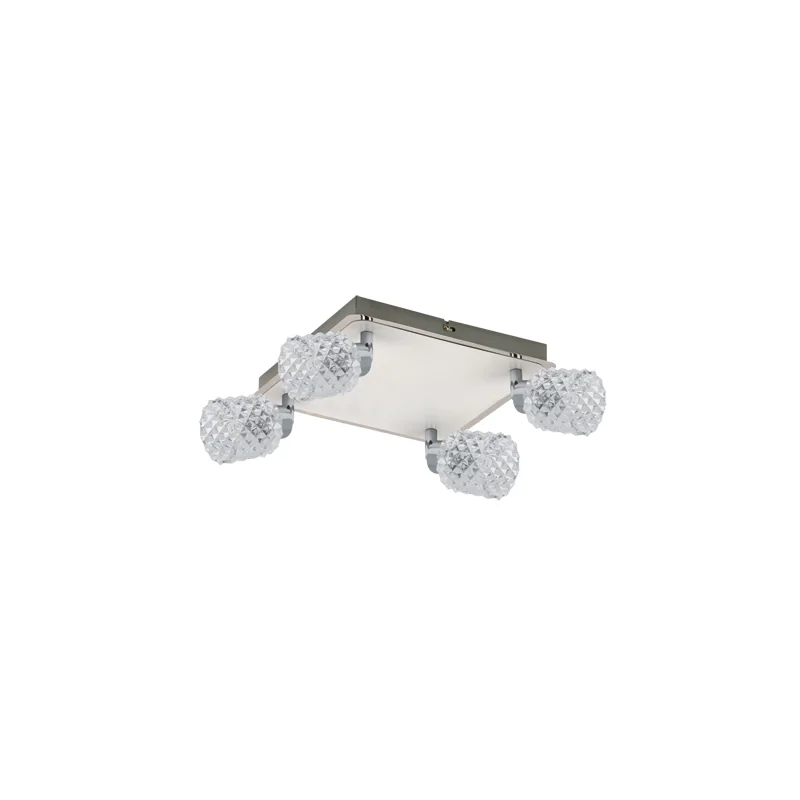 Lampa sufitowa marki IDEUS wykonana została ze stali nierdzewnej oraz szkła w kolorach chrom oraz biel. Poczwórne, wymienne źródło świtała dołączone do zestawu daje możliwość samodzielnego doboru barwy oraz mocy, 4 x max 40W. żarówek G9. Tym sposobem w prosty i niedrogi sposób możemy zmieniać charakter wnętrza przeznaczenia oprawy. Stopień ochrony IP20 decyduje o wewnętrznym zastosowaniu oświetlenia. Niewielkie wymiary 250 x 92 x 250 oraz estetyka wykonania pozwalają na stosowanie oświetlenia w różnorodnych wnętrzach.