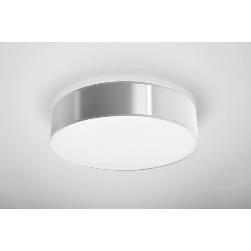 Szary plafon Arena marki Sollux lighting to delikatne i nowoczesne oświetlenie naszego wnętrza. Lampa sufitowa dostępna w trzech wersjach kolorystycznych oraz w kilku rozmiarach stanie się wyjątkową ozdobą w naszym salonie czy jadalni. Wymienne źródła światła o gwincie E27 pozwolą nam dobrać moc i barwę światła odpowiednią do naszych oczekiwań. Pamiętajmy, że żarówki nie zostały dołączone do zestawu. Plafon dzięki swojej prostej formie jest łatwy w utrzymaniu czystości, bo wystarczy przetrzeć go szmatką. Lampa sufitowa Arena to polski produkt, który został objęty 5-letnią gwarancją producenta.