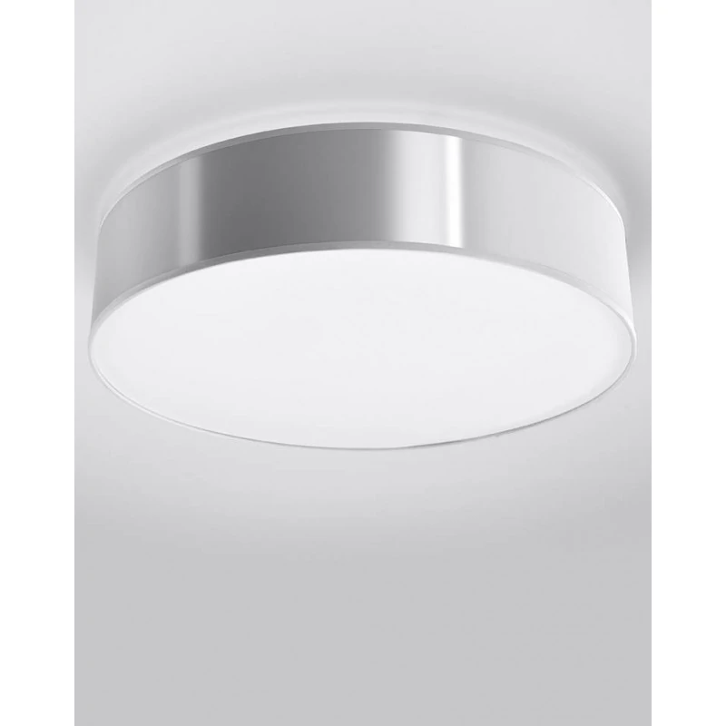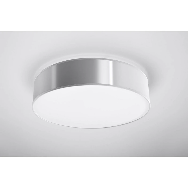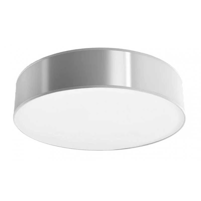 Szary plafon Arena marki Sollux lighting to subtelne oświetlenie w naszym salonie, gabinecie czy jadalni. Zawieszony w pojedynkę czy w kilka sztuk o różnych rozmiarach stworzy nam cudowną aranżację i stanie się piękną ozdobą w naszym wnętrzu. Lampa sufitowa dostępna jest w trzech wersjach kolorystycznych. Dzięki wymiennym źródłom światła o gwincie E27 dobierzemy odpowiednią do naszych oczekiwań moc i barwę światła. Pamiętajmy, że żarówki nie zostały dołączone do zestawu. Plafon, który jest łatwy w utrzymaniu czystości, to polski produkt objęty 5-letnią gwarancją producenta.