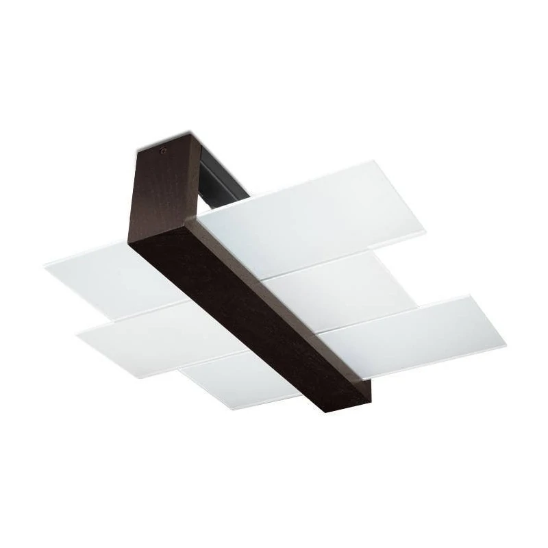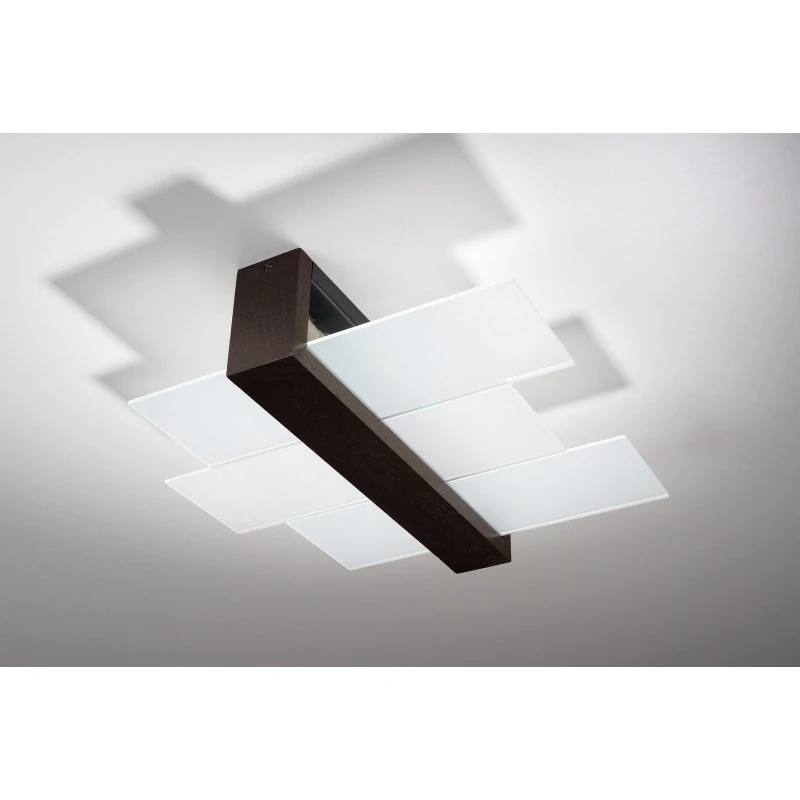 Plafon Feniks marki Sollux lighting w ciekawym ciemnobrązowym kolorze to piękna i oryginalna ozdoba naszego wnętrza. Lampa sufitowa, a dokładnie jej model dostępny jest w trzech wersjach kolorystycznych. Plafon możemy połączyć z kinkietem z tej samej serii. Wymienne żarówki o gwincie E27 sprawią, że dostosujemy moc i barwę światła do naszych oczekiwań. Pamiętajmy, że w zestawie jest brak źródła światła. Plafon wykonany został z drewna i szkła, i jest łatwy w utrzymaniu czystości, wystarczy nam ściereczka. Lampa sufitowa to polski produkt objęty 5-letnią gwarancją producenta.