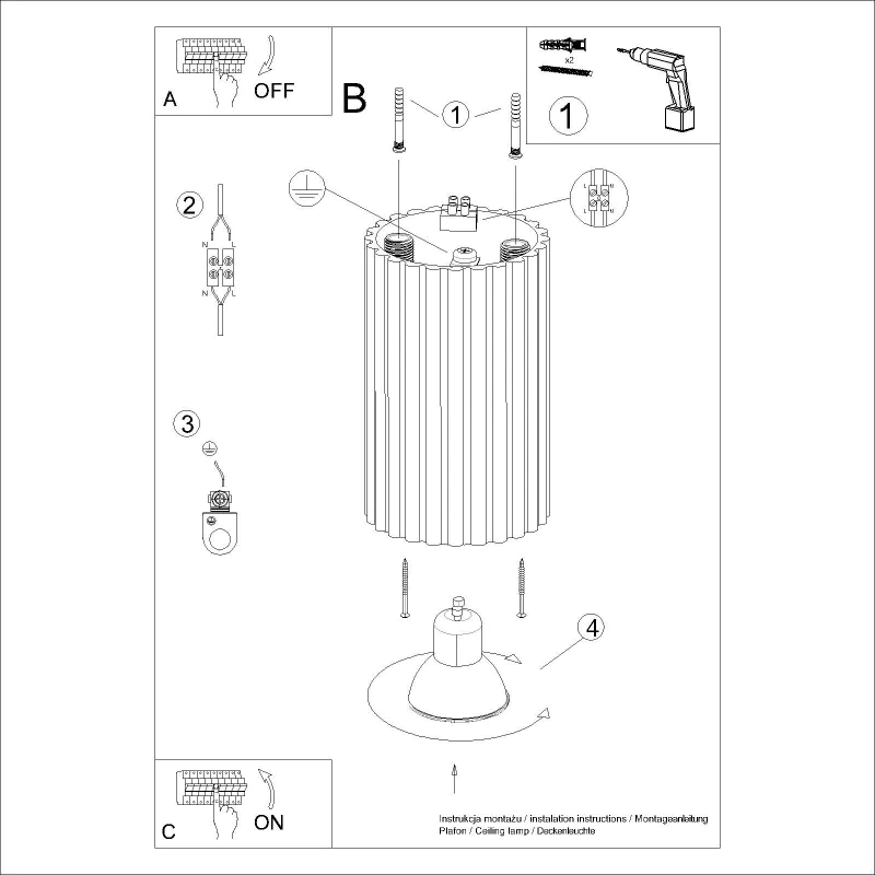 - Źródło światła: GU10, 1x max 10W LED, ~230V, 50Hz, IP20, klasa ochronności I