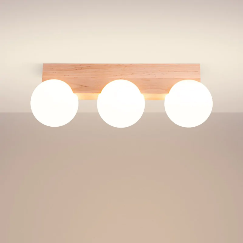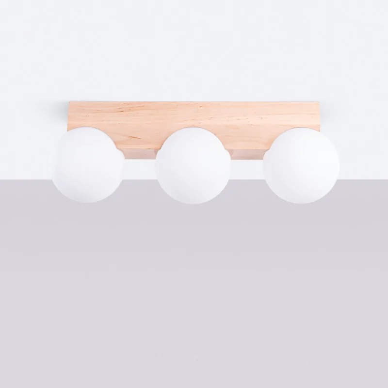 Plafon Listwa oświetleniowa 3 kule BULBO naturalne drewno Sollux SL.1684