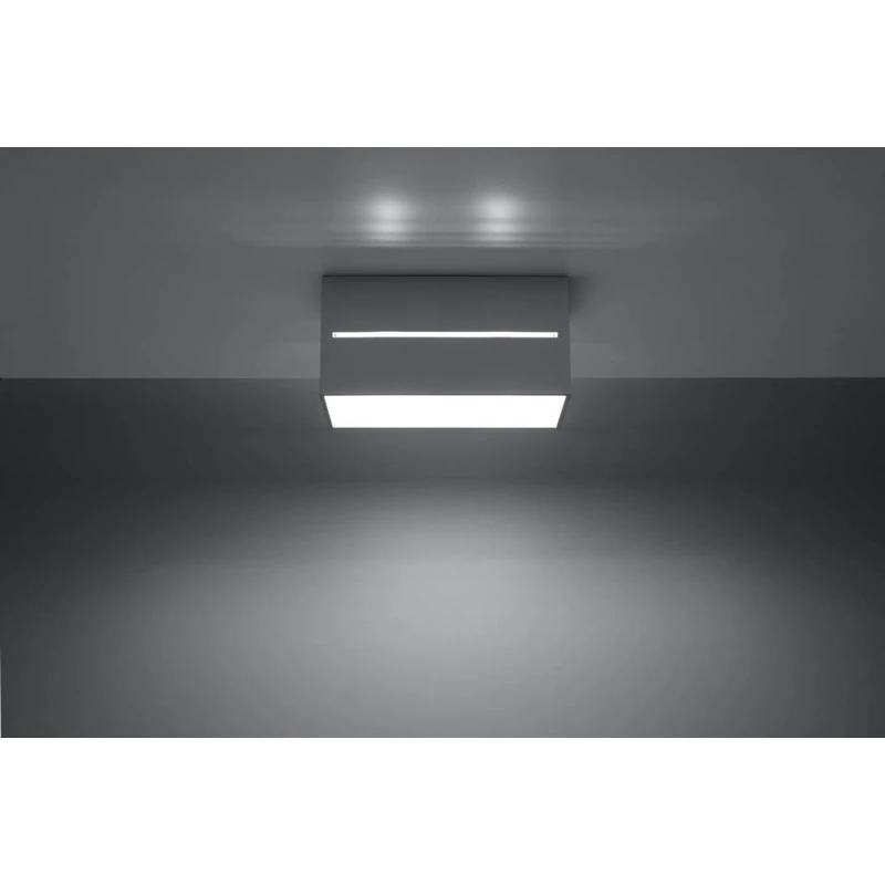Szary plafon Lobo Maxi marki Sollux lighting stanie się piękną ozdobą naszego salonu, którą możemy połączyć z kinkietami, z tej samej serii. Lampa sufitowa dostępna jest jeszcze w dwóch wersjach kolorystycznych i mniejszym rozmiarze. Dzięki wymiennym źródłom światła o gwincie G9 możemy dobrać odpowiednią moc i barwę światła. Nie tylko będzie ono skierowane w dół, ale również przez linię w ścianie klosza się rozproszy. Żarówki nie zostały dołączone do zestawu. Plafon wykonany z aluminium, czyli materiału odpornego na uszkodzenia. Polski produkt z 5-letnią gwarancją producenta.