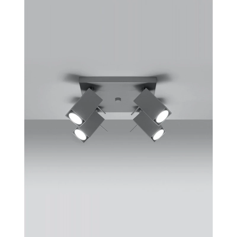 Szary plafon Merida marki Sollux lighting to wyjątkowe, nowoczesne i punktowe oświetlenie naszego wnętrza. Ruchome klosze w lampie sufitowej rozprowadzą nam światło w miejsca, które będziemy chcieli oświetlić. Wymienne źródła światła o gwincie Gu10 dadzą nam możliwość doboru mocy i barwy światła. Pamiętajmy, że żarówki nie są dołączone do zestawu. Plafon został wykonany ze stali pomalowanej proszkowo. Dostępny jest w trzech kolorach i w różnych wersjach z punktami świetlnymi. Możemy również dobrać kinkiet z tej samej serii. Lampa sufitowa to polski produkt z 5-letnią gwarancją producenta.