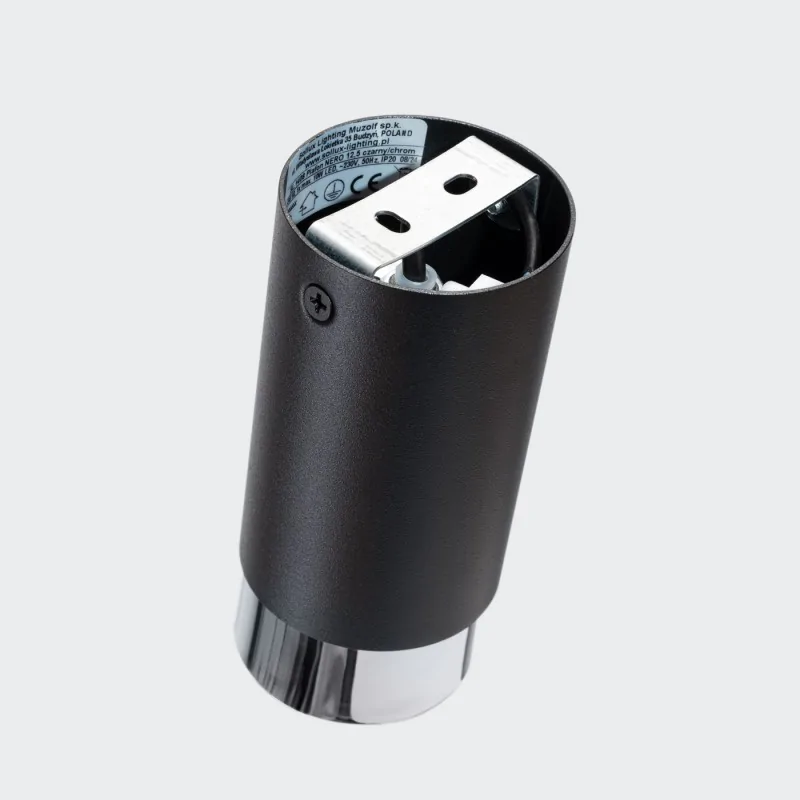 Odkryj nowoczesny design z plafonem NERO, który łączy w sobie elegancję i funkcjonalność. Jego cylindryczny kształt oraz połączenie matowej czerni z błyszczącymi metalicznymi akcentami nadają mu wyjątkowego charakteru, który doskonale komponuje się z nowoczesnymi i minimalistycznymi wnętrzami.