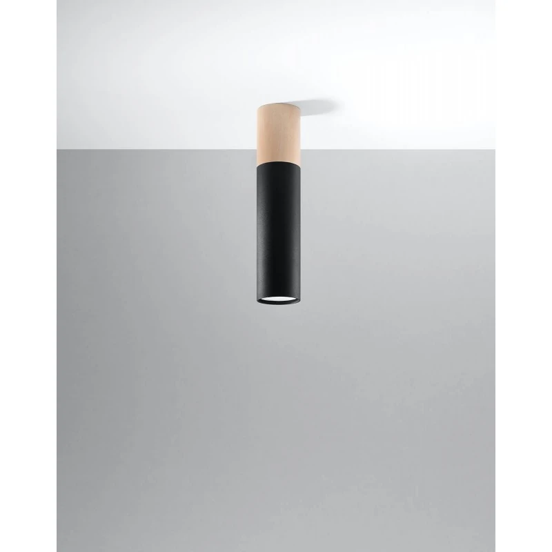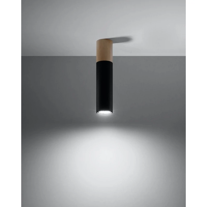 Tuba natynkowa downlight czarna z drewnianą wstawką PABLO SL.0635 SOLLUX