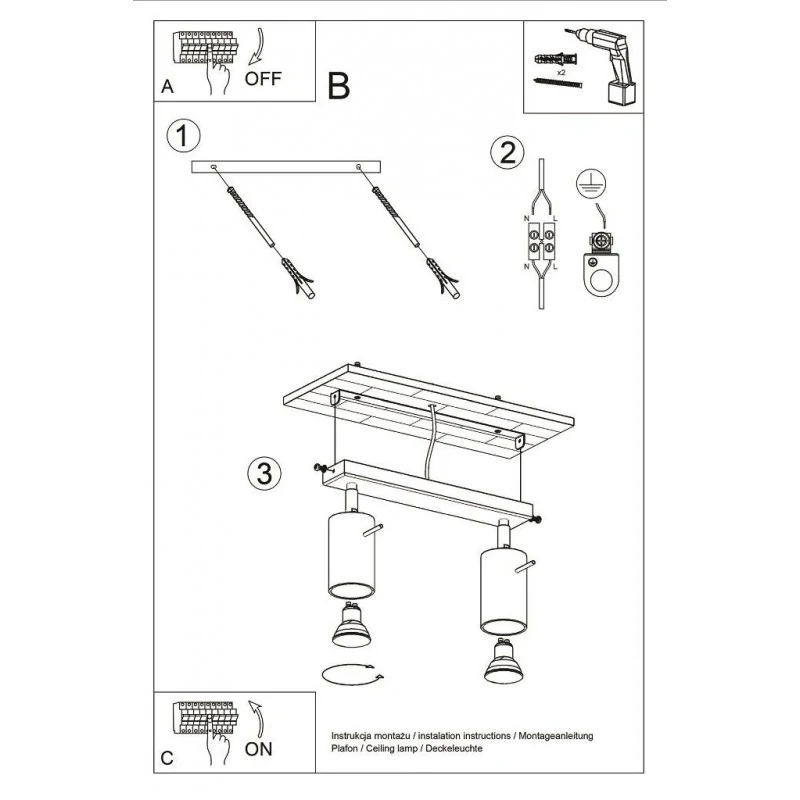 Źródło światła: GU10, 2x40W, 2x12W LED,