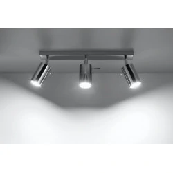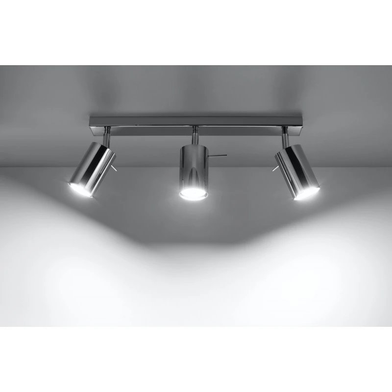 Lampy RING to połączenie minimalistycznego designu z najwyższą funkcjonalnością. Wszystkie modele z kolekcji posiadają chromowane przeguby, które pozwalają na regulację promieni świetlnych. Nowoczesne lampy RING doskonale odnajdą się w loftach oraz przestrzeniach urządzonych w stylach minimalistycznym oraz industrialnym. Precyzja, z jaką zostały wykonane, jak również wysokiej jakości materiały stanowią o ich nienagannej prezencji i długowieczności. Model przeznaczony jest na 3 żarówki GU10 (max 40W lub 12WLED) - brak w zestawie. Wymiary oprawy oświetleniowej to 118/6/16mm. Produkt wykonano ze stali w kolorze chrom.