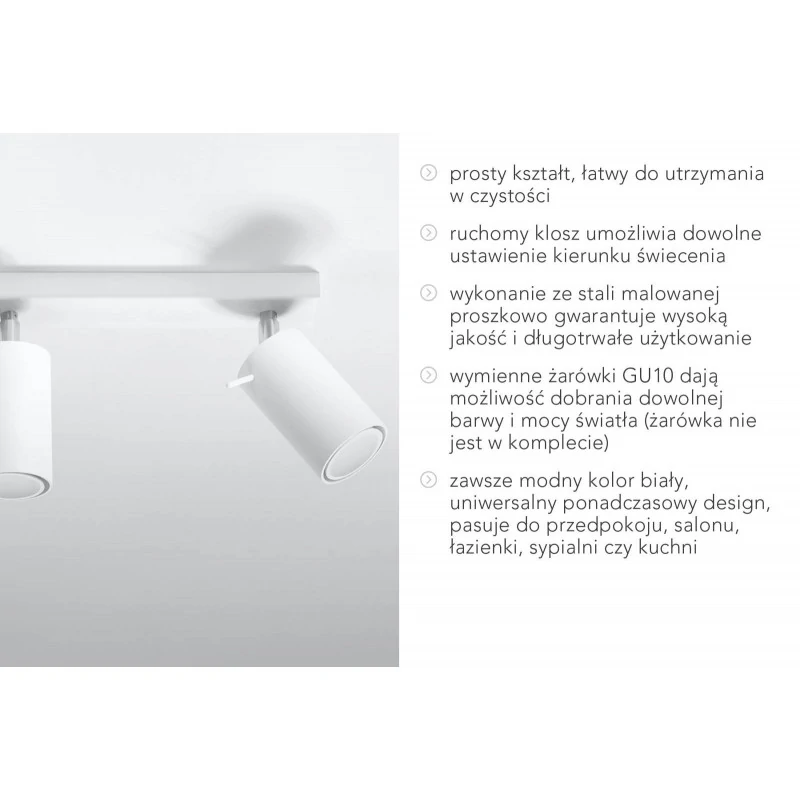 Lampy RING to połączenie minimalistycznego designu z najwyższą funkcjonalnością. Wszystkie modele z kolekcji posiadają chromowane przeguby, które pozwalają na regulację promieni świetlnych. Nowoczesne lampy RING doskonale odnajdą się w loftach oraz przestrzeniach urządzonych w stylach minimalistycznym oraz industrialnym. Precyzja, z jaką zostały wykonane, jak również wysokiej jakości materiały stanowią o ich nienagannej prezencji i długowieczności. Model przeznaczony jest na 3 żarówki GU10 (max 40W lub 12WLED) - brak w zestawie. Wymiary oprawy oświetleniowej to 118/6/16mm. Produkt wykonano ze stali malowanej na biało.