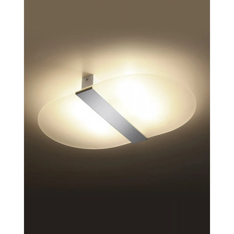 Biały plafon Salia marki Sollux lighting to nowoczesne i ciekawe oświetlenie w naszym salonie, przedpokoju czy gabinecie. Ciekawe połączenie szkła i stali stanie się wyjątkową ozdobą w naszym wnętrzu. Matowy klosz w lampie sufitowej pięknie i we wszytskich kierunkach rozproszy nam światło. Dzięki wymiennym źródłom światła o gwincie G9 dobierzemy odpowiednią do naszych oczekiwań moc i barwę światła. Pamiętajmy, że żarówki nie zostały dołączone do zestawu. Plafon jest łatwy w utrzymaniu czystości, bo wystarczy raz na jakiś czas przetrzeć go szmatką, by znów lśnił czystością. Polski produkt objęty 5-letnią gwarancją producenta.
