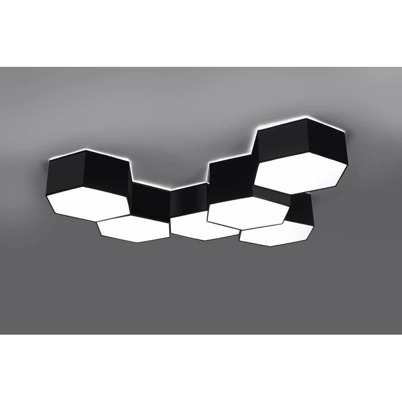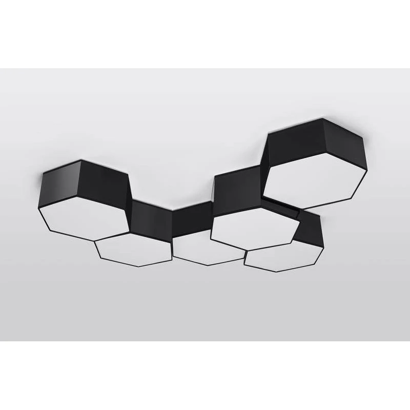 Czarny plafon Sunde 13 marki Sollux lighting to piękna i nowoczesna ozdoba naszego wnętrza. Sześciokątna lampa sufitowa dostępna jest w innych rozmiarach, a także w kolorze bieli. Plafon przytwierdzany bezpośrednio do sufitu i jest łatwy w utrzymaniu. Wymienne źródła światła o gwincie E27 pozwolą nam dobrać odpowiednią do naszych oczekiwań moc i barwę światła. Pamiętajmy, że żarówka nie jest dołączona do zestawu. Produkt polski objęty 5-letnią gwarancją.