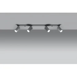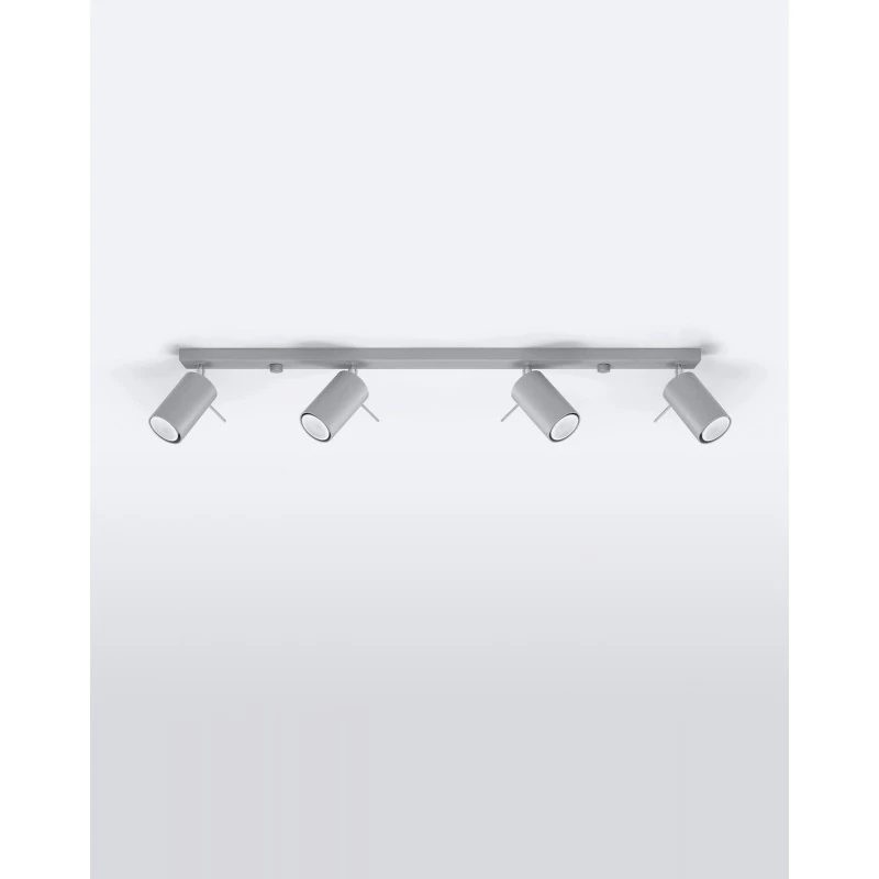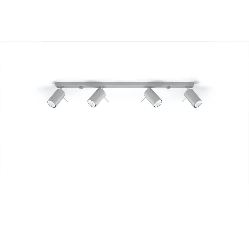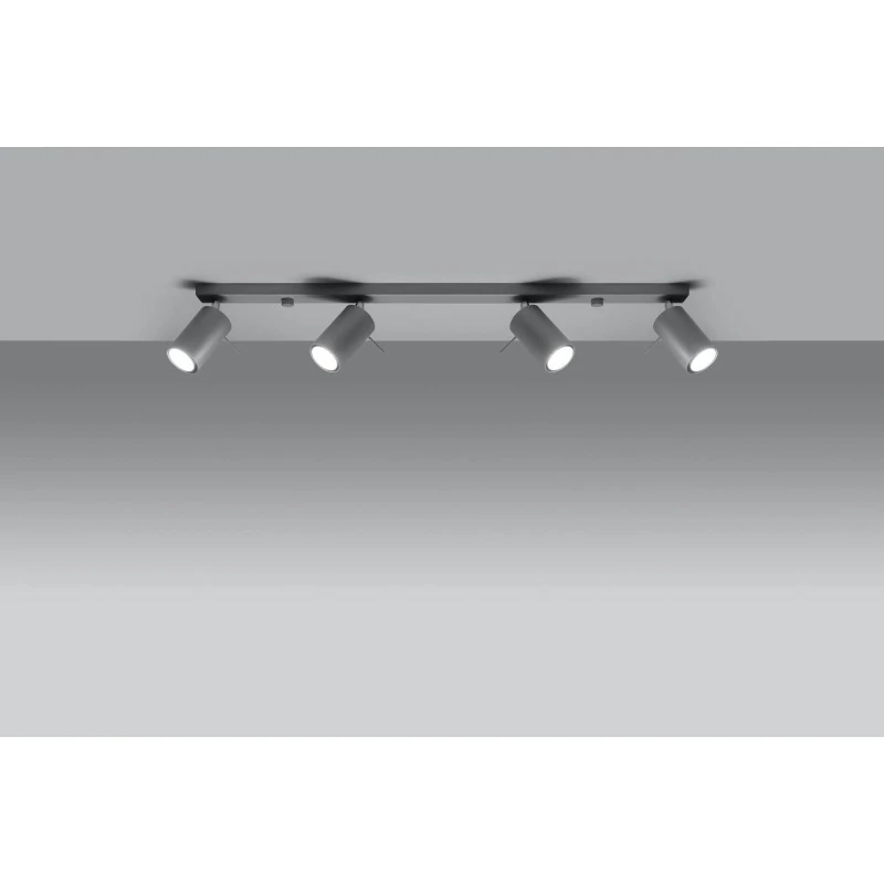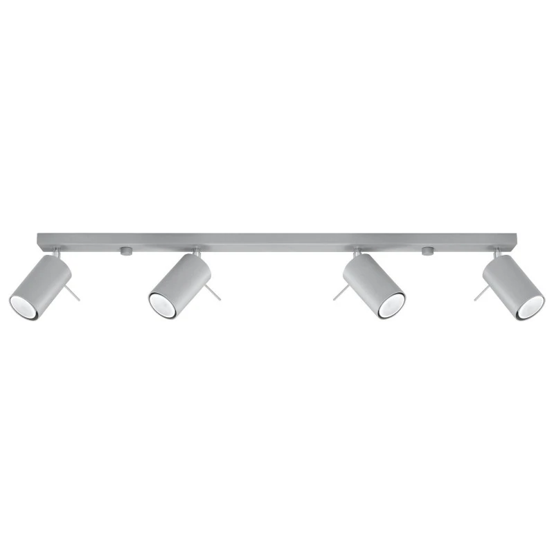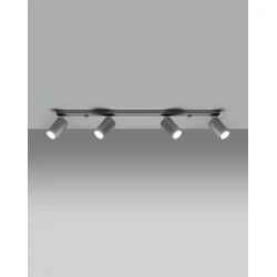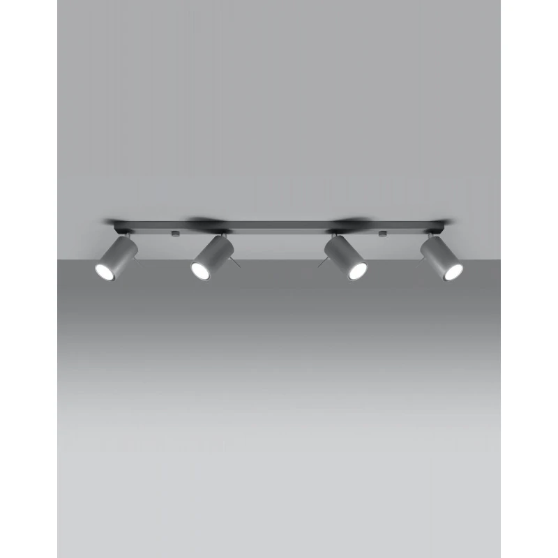 Szary plafon Ring marki Sollux lighting stanie się cudowną ozdobą naszego salonu, jadalni czy też holu. Doskonale wpasuje się w wystrój naszego wnętrza. Reflektory lampy sufitowej posiadają chromowe przeguby, które możemy regulować w związku z tym dostosują nam światło do naszych potrzeb. Dzięki wymiennym źródłom światła o gwincie GU10 dobierzemy zarówno moc i barwę światła. Pamiętajmy jednak, że żarówki nie są dołączone do zestawu. Oświetlenie sufitowe dostępne jest jeszcze w innych kolorach (biały, czarny, chrom). Plafon o wymiarach 80x6x16 cm. Polski produkt objęty 5-letnią gwarancją producenta.