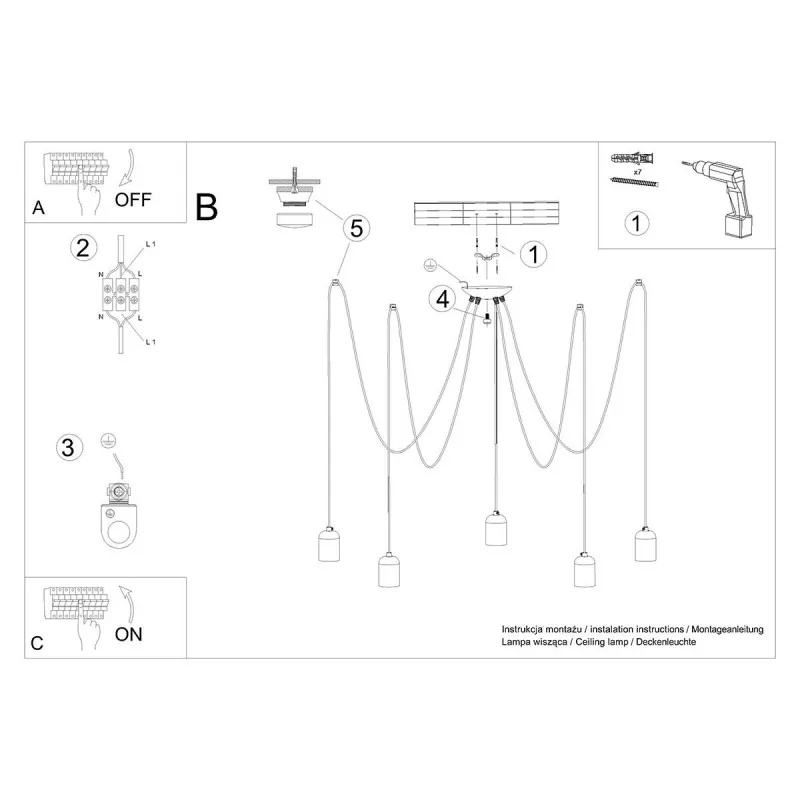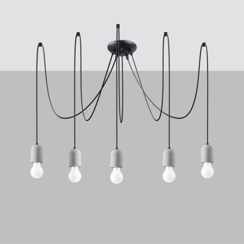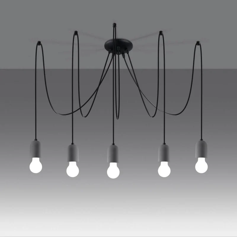 Szaro-czarny żyrandol Neso marka Sollux lighting to nowoczesne i ciekawe oświetlenie naszego wnętrza. Połączenie betonu z PCV super sprawdzi się w stylu loftowym i indrustialnym. Dzięki wymiennym źródłom światła o gwincie E27 dobierzemy odpowiednią do naszych oczekiwań barwę światła oraz maksymalną moc 5x15W. Pamiętajmy, że żarówki nie znjadują się w zestawie. Żyrandol Neso dostępny jest w kilku wariantach oraz dostępny jest kinkiet, który pięknie będzie wyglądał nad łóżkiem. Unikalnie ułożyć możemy przewód, więc oświetlenie nada naszemu wnętrzu charakter. Polski produkt objęty 5-letnią gwarancją producenta.