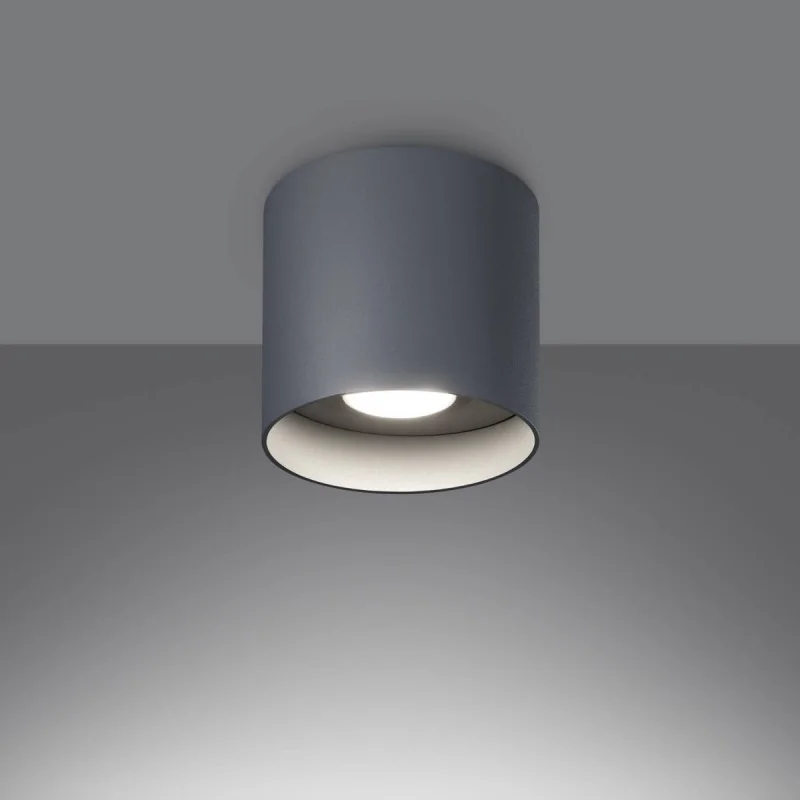 Szary plafon Mika marki Sollux lighting to nowoczesne, ciekawe oświetlenie w kształcie walca. Oświetlenie sufitowe dostępne jest w czterech kolorach. Stanie się również wyjątkową ozdobą w wybranym przez nas wnętrzu. Wymienne źródło światła o gwincie GU10 pozwoli nam dobrać do naszych oczekiwań barwę światła oraz maksymalną moc 10W. Pamiętajmy, że żarówka nie znajduje się w zestawie. Plafon wykonany został z aluminium i jest łatwy w utrzymaniu czystości, bo wystarczy raz na jakiś czas przetrzeć go szmatką. Oświetlenie Mika jest produktem polskim i objęte jest 5-letnią gwarancją producenta.
