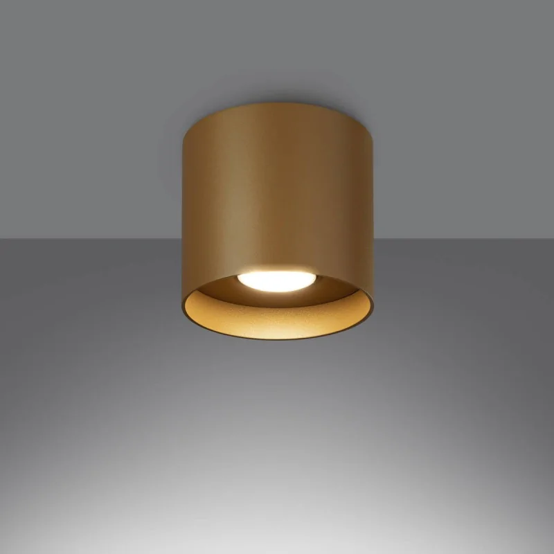 Złoty plafon Mika marki Sollux lighting to orginalne oświetlenie w kształcie walca, które cudownie oświetli nam nasze wnętrze stając się jego wyjątkową ozdobą. Oświetlenie posiada wymienne źródło światła o gwincie GU10. Dobierzemy więc odpowiednią do naszych oczekiwań barwę światła oraz maksymalną moc 10W. Pamiętajmy, że żarówka nie jest dołączona do zestawu. Oświetlenie sufitowe dostępne jest w czterech kolorach, więc odnajdzie się w każdej przestrzeni. Wykonane zostało z dobrej jakości materiału. Plafon jest łatwy w utrzymaniu czystości, bo wystarczy raz na jakiś czas przetrzeć go szmatką. Polski produkt objęty 5-letnią gwarancją producenta.