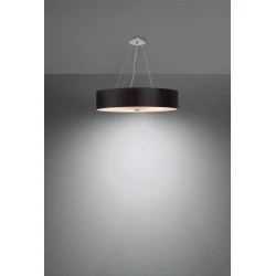 Czarny żyrandol Skala 60 marki Sollux lighting to piękna i delikatna ozdoba naszego wnętrza. Lampa sufitowa wykonana została ze stali, szkła i tkaniny, więc to nie tylko idealne rozwiązanie dla miłośników minimalizmu. Dzięki wymiennym źródłom światła o gwincie E27 możemy do naszych oczekiwań dostosować moc i barwę światła. Pamiętajmy, że żarówki nie są dołączone do zestawu. Żyrandol posiada możliwość regulacji przewodów, więc możemy zawiesić go na dowolnej wysokości. Lampa sufitowa to cudowny dodatek w niejednym wnętrzu. Polski produkt objęty 5-letnią gwarancją producenta.