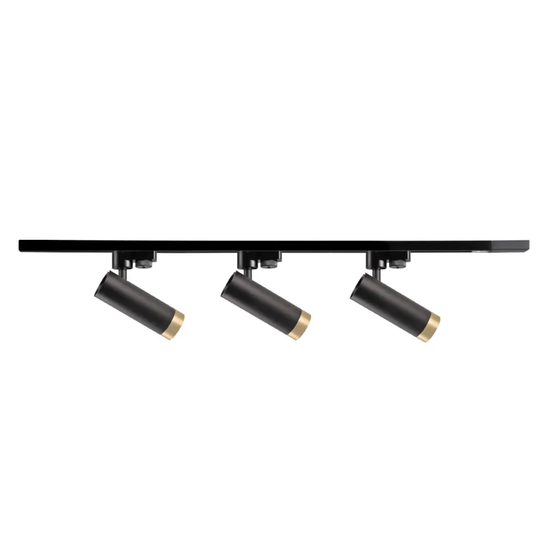 Nowoczesny zestaw szynowy z kolekcji FADO marki POLUX-GOLDLUX, posiada trzy reflektory z wymiennym źródłem światła. Całość wykonana jest z aluminium w kolorze czarnym. Elementem dekoracyjnym jest złoty pierścień na końcu każdej oprawy, co czyni ją niezwykle elegancką. Zestaw służy do bezpośredniego oświetlenia wybranych stref, a także wyodrębnionych przedmiotów. Idealnie nadaje się do oświetlenia kuchni, przedpokoju, salonu, jak również wystaw sklepowych, biur, hoteli itp. Oprawy zostały przystosowane do żarówki o trzonku GU10. Dzięki wymiennej żarówce można zastosować barwę światła odpowiednią do wnętrza. Szynoprzewód mierzy 1m długości. Polecamy zapoznać się z całą kolekcją FADO.