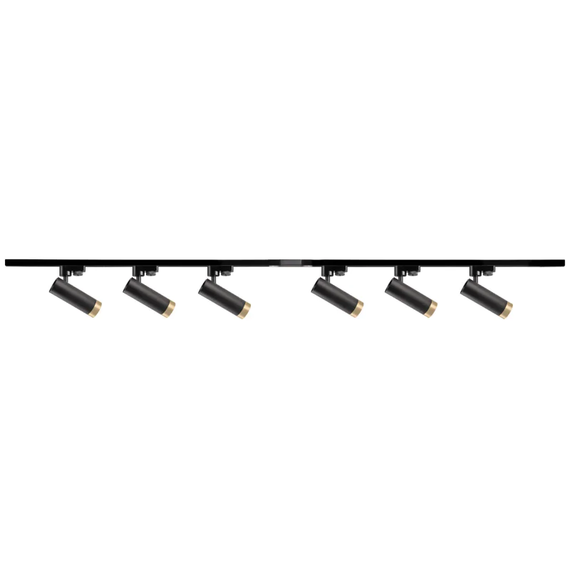 Zestaw szynowy z kolekcji FADO marki POLUX-GOLDLUX, to eleganckie i funkcjonalne rozwiązanie oświetleniowe, które doskonale sprawdzi się w nowoczesnych wnętrzach. System 1-fazowy o długości 2 metrów umożliwia elastyczne rozmieszczenie sześciu lamp, co pozwala na precyzyjne skierowanie światła tam, gdzie jest najbardziej potrzebne. Szynoprzewód jest dzielony na dwie części, każdy po 1m. Lampy przystosowane są do żarówek o gwincie GU10 (brak w zestawie). Czarna szyna w połączeniu ze złotymi akcentami tworzy stylowy, ponadczasowy design, który idealnie komponuje się z różnymi stylami aranżacji. Zestaw jest łatwy w montażu i oferuje szerokie możliwości dostosowania oświetlenia do indywidualnych potrzeb użytkownika, dzięki możliwości regulacji kierunku światła. To doskonały wybór do salonu, kuchni, biura czy korytarza, gdzie estetyka idzie w parze z funkcjonalnością.