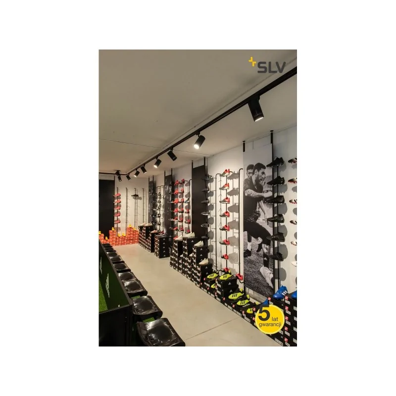 Czarna oprawa szynowa led przystosowana do systemu 3 fazowego od marki SPOTLINE charakteryzuje się wysoką jakością wykonania. Aluminiowa obudowa w połączeniu z wbudowanym źródłem światła led gwarantują bardzo długą żywotność. Przewidywany czas pracy prezentowanego oświetlenia szynowego sięga aż 30000 godzin co potwierdzone zostało 5-letnią gwarancją producenta. Reflektor na szynie emituje neutralne, białe światło 4000K z mocą strumienia świetlnego 3450 lumenów. Lampa zapewnia doskonałą widoczność przez co idealnie sprawdzi się we wszelkiego rodzaju pomieszczeniach o różnorodnym zastosowaniu.
