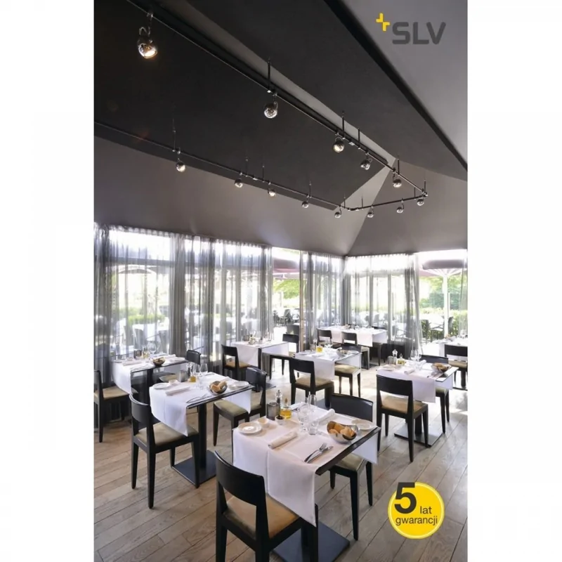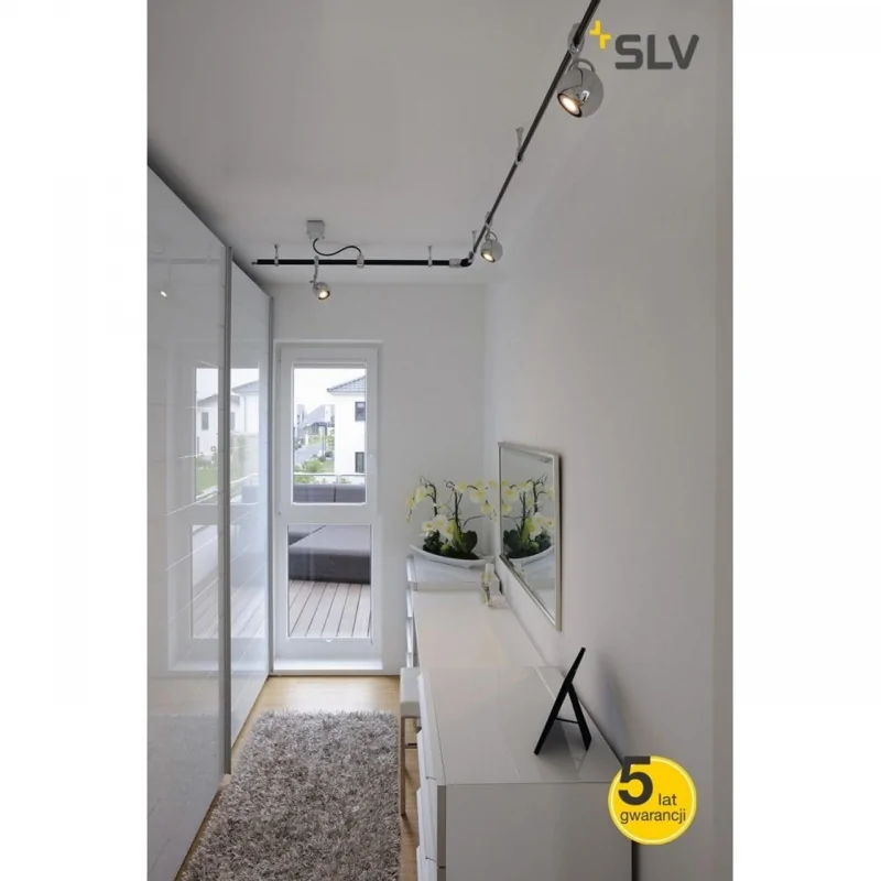 Lampa przeznaczona do systemu szynowego firmy Spotline w kolorze chromu idealnie wpasuje się we wnętrza wykonane w różnym klimacie. Wymienne źródło światła pozwala na samodzielny dobór żarówki GU10 odpowiedniej pod względem barwy oraz mocy do miejsca przeznaczenia. Oprawa posiada giętkie ramię. Maksymalny zakres obrotu oświetlenia wynosi 350 stopni a jego skręt 90. Klasa energetyczna produktu zależna jest od wyboru źródła światła. Doskonała jakość wykonania sprawia, że oprawa posiada pięcioletnią gwarancję od samego producenta.