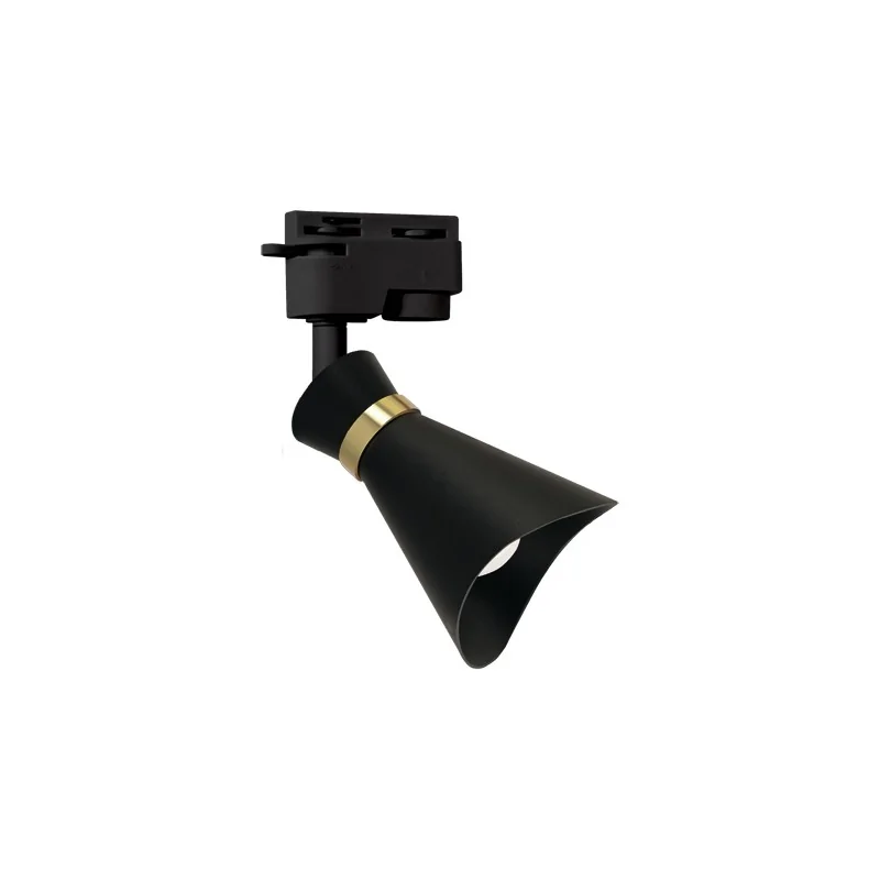 Lampa szynowa 04166 LORETA, została przystosowana do zamontowania na szynoprzewodzie. Jest to produkt marki IDEUS, wykonany w kolorze czarnym ze złotym dodatkiem, który nadaj szyku całej konstrukcji. Nietuzinkowy kształt klosza dodatkowo pogłębia wyjątkowość lampy. Do oprawy należy wybrać szynoprzewód z kolekcji IDEUS. Oświetlenie szynoprzewodowe przystosowane jest na żarówkę o trzonku E14 do maksymalnej mocy 35W (brak w zestawie). Lampę możemy dowolnie przesunąć na szynie, dodatkowo posiada ruchomy klosz w którym skierujemy strumień światła w odpowiedni kierunek. Oprawa mierzy 19,5cm wysokości oraz 8,6cm szerokość. Polecamy zapoznać się z całą kolekcją LORETA.