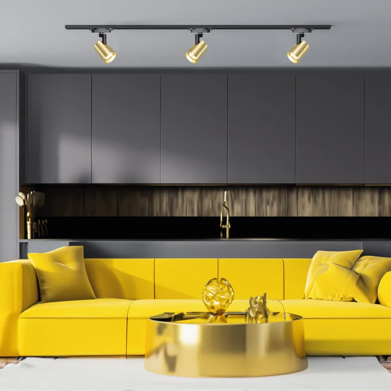 Lampa z kolekcji VOLF producenta EKO-LIGHT, przystosowana jest do montażu na szynie. Jest to nowoczesne i funkcjonalne oświetlenie szynowe, które wniesie do pomieszczenia nietuzinkowy styl i rozświetli maksymalnie wnętrze. Lampa posiada ruchomy klosz, który umożliwia skierowanie światła w wymaganym kierunku. Cała oprawa wykonana jest z aluminium w kolorze szykownego złota w połączeniu z klasyczną czernią. Oświetlenie przystosowane jest do żarówki o gwincie GU10 (brak w zestawie). Lampa mierzy 9,9cm szerokości i 13,8cm wysokości. Polecamy zapoznać się z całą kolekcją VOLF, w której znajdziemy systemy szynoprzewodowe oraz tradycyjne lampy sufitowe.