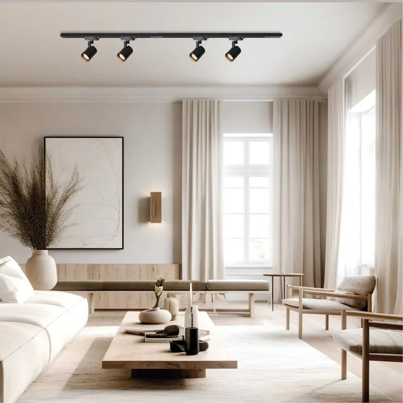 Funkcjonalny zestaw szynoprzewodowy z kolekcji VOLF, to unikalne oświetlenie sufitowe marki EKO-LIGHT. Łącznik umieszczony na środku listwy, pozwala na zamontowanie oprawy zarówno pod kątem jak i w linii prostej. Sprawia to, że możemy dowolnie aranżować przestrzeń i umieścić szynoprzewód w każdym miejscu. Dodatkowo w zestawie również znajdują się 4 lampy z ruchomymi kloszami, które umożliwią skierowanie światła w odpowiednim kierunku. Listwa szynowa mierzy 150cm. Całość wykonana jest z aluminium w klasycznym czarnym kolorze. Do lamp należy wybrać 4 żarówki o gwincie GU10. Jest to oryginalny i niezwykle funkcjonalny system szynowy, który rozświetli wnętrze nietuzinkowym klimatem. W serii VOLF, znajdziemy lampy do szyny oraz tradycyjne sufitowe.