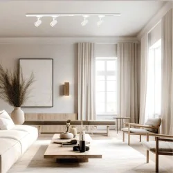 Funkcjonalny zestaw szynoprzewodowy z kolekcji VOLF, to unikalne oświetlenie sufitowe marki EKO-LIGHT. Łącznik umieszczony na środku listwy, pozwala na zamontowanie oprawy zarówno pod kątem jak i w linii prostej. Sprawia to, że możemy dowolnie aranżować przestrzeń i umieścić szynoprzewód w każdym miejscu. Dodatkowo w zestawie również znajdują się 4 lampy z ruchomymi kloszami, które umożliwią skierowanie światła w odpowiednim kierunku. Listwa szynowa mierzy 150cm. Całość wykonana jest z aluminium w klasycznym białym kolorze. Do lamp należy wybrać 4 żarówki o gwincie GU10. Jest to oryginalny i niezwykle funkcjonalny system szynowy, który rozświetli wnętrze nietuzinkowym klimatem. W serii VOLF, znajdziemy lampy do szyny oraz tradycyjne sufitowe.