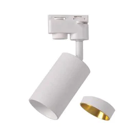 Lampa sufitowa do zamontowania na szynie MARIBEL marki POLUX to nowoczesne oświetlenie w kształcie reflektorka sufitowego. Obudowa oprawy jest w kolorze białym, dzięki czemu dopasuje się do większości pomieszczeń. Dodatkowo lampa wyposażona została w wymienny złoty i biały pierścień dekoracyjny. Produkt sprzedawany jest bez źródła światła w zestawie, dlatego indywidualnie dopasujesz moc i barwę żarówki GU10 do własnych potrzeb, nieprzekraczającą mocy 10W led. Wymiary aluminiowego reflektora szynowego to: Ø6x10~18 cm.
