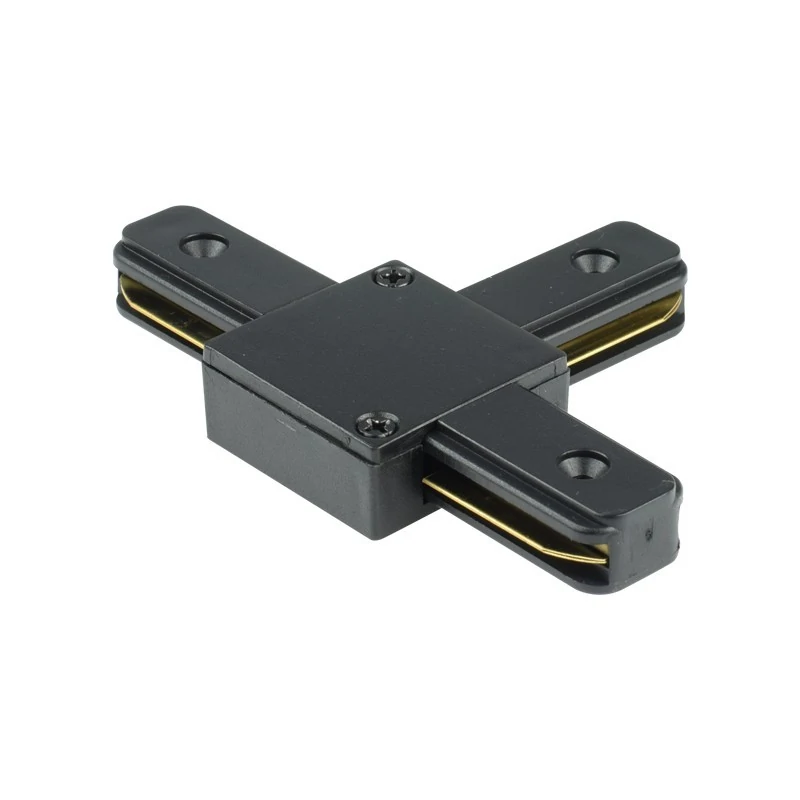 Łącznik kątowy T producenta OZZO, dedykowany jest do szynoprzewodu 1 fazowego. Wykonany jest z aluminium w czarnym kolorze. Umożliwia łatwe oraz estetyczne łączenie prowadnic szynowych. Dzięki łącznikom możemy stworzyć różne konfigurację szynoprzewodów.