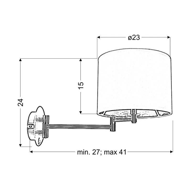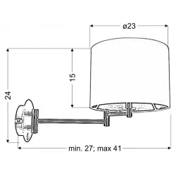 Materiał wykonania: podstawa stalowa, abażur tkanina+PCV. Kolor podstawy: chromowy, abażur czarny. Wysokość: 24. Szerokość: 23. Głębokość: 41. Wymiary (wys. x szer. x gł.): 24x23x41. Waga netto: 1,18. Rodzaj trzonka: E14.