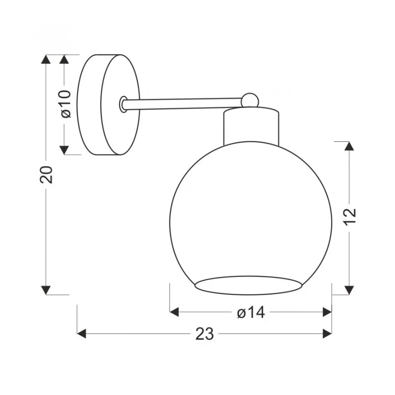 Materiał wykonania: podstawa stalowa, klosz szklany. Kolor podstawy: czarny + biały. Wysokość: 20. Szerokość: 23. Głębokość: 14. Wymiary (wys. x szer. x gł.): 20x23x14. Waga netto: 0,42. Rodzaj trzonka: E27.