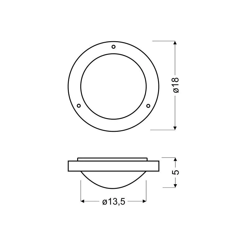 Materiał wykonania: podstawa stalowa, klosz szklany. Kolor podstawy: satynowy. Wysokość: 5. Szerokość: 18. Głębokość: 18. Wymiary (wys. x szer. x gł.): 5x18x18. Średnica: 18. Waga netto: 0,40. Rodzaj trzonka: G9.