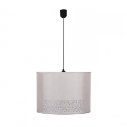 Materiał wykonania: zawiesie stalowe, abażur tkanina/PCV. Kolor podstawy: czarny+kremowy. Wysokość: 90. Szerokość: 33. Głębokość: 33. Wymiary (wys. x szer. x gł.): 90x33x33. Waga netto: 0,70. Rodzaj trzonka: E27.