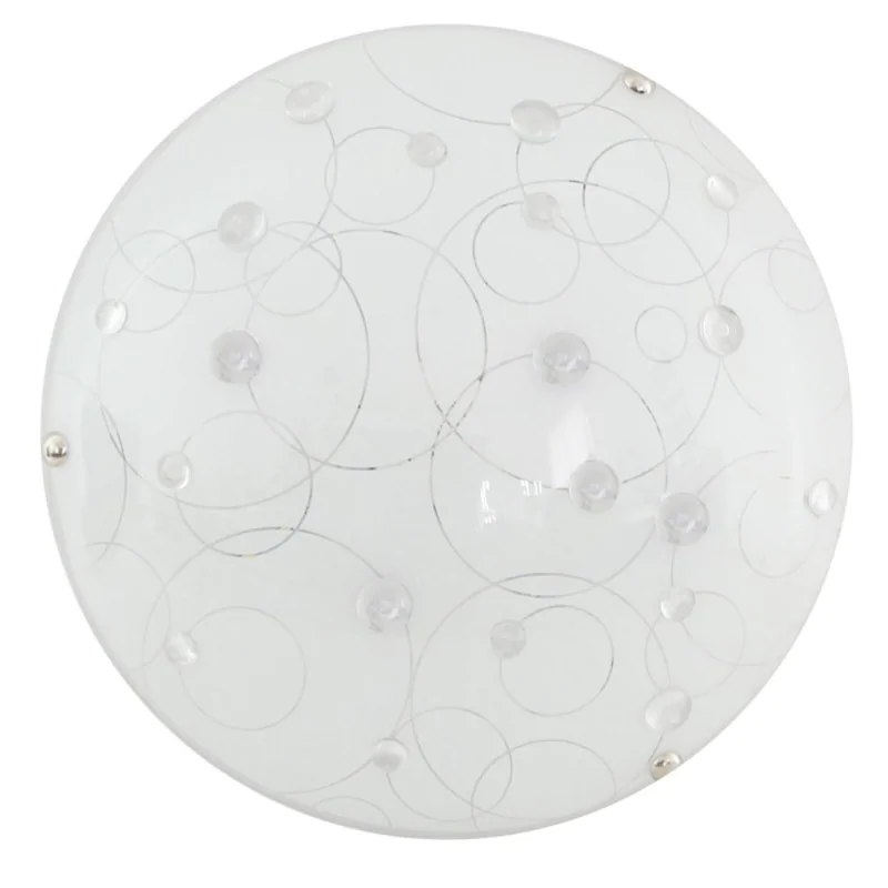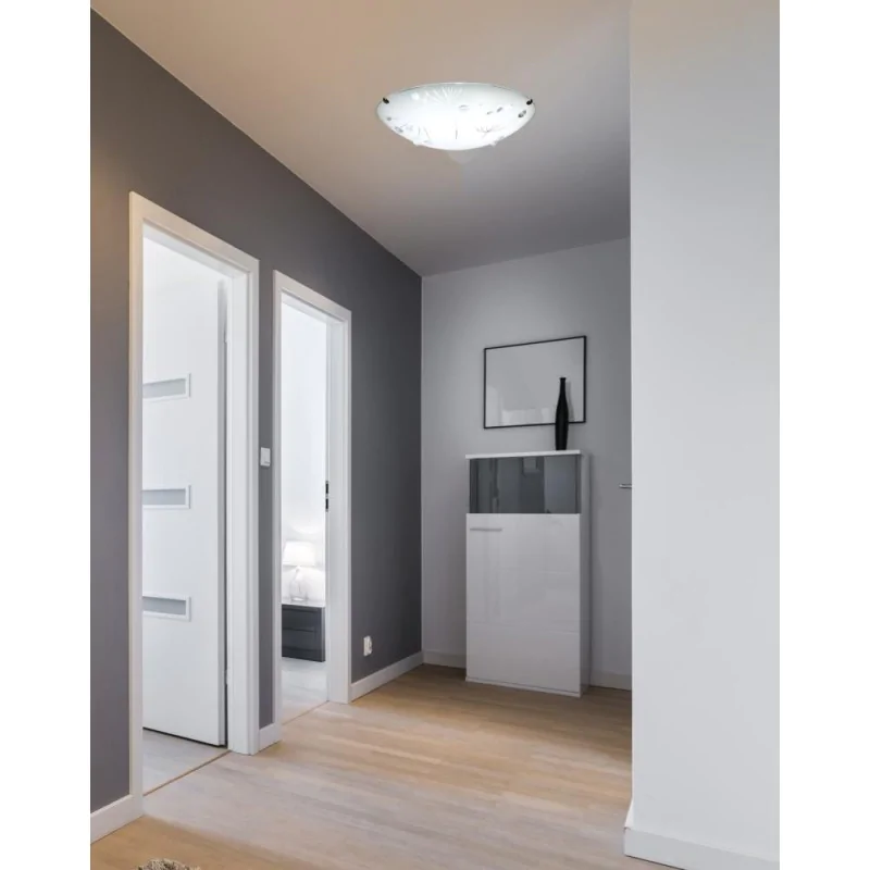 Materiał wykonania: podstawa stalowa, klosz szklany. Kolor podstawy: transparentny. Wysokość: 9. Szerokość: 30. Głębokość: 30. Wymiary (wys. x szer. x gł.): 9x30x30. Waga netto: 0,70. Barwa światła: neutralna.