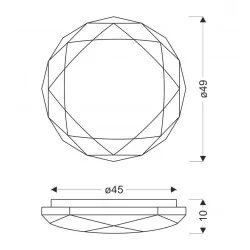 Materiał wykonania: podstawa stalowa, klosz akrylowy. Kolor podstawy: biały. Wysokość: 10. Szerokość: 49. Głębokość: 49. Wymiary (wys. x szer. x gł.): 10x49x49. Waga netto: 1,22.