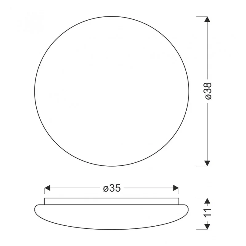 Materiał wykonania: podstawa stalowa, klosz akrylowy. Kolor podstawy: biały. Wysokość: 11. Szerokość: 38. Głębokość: 38. Wymiary (wys. x szer. x gł.): 11x38x38. Waga netto: 0,65.