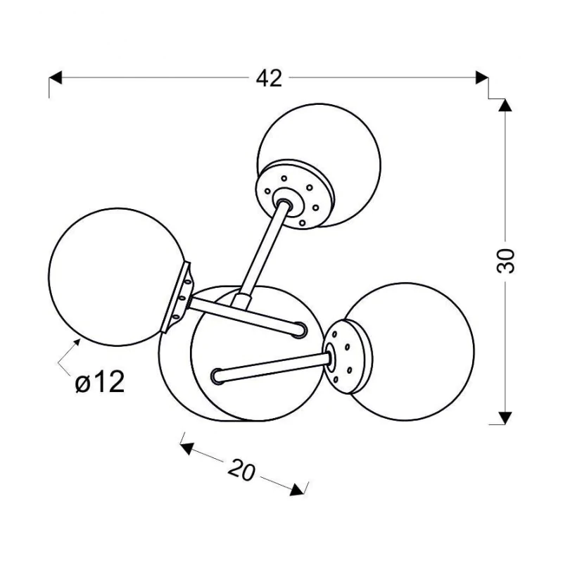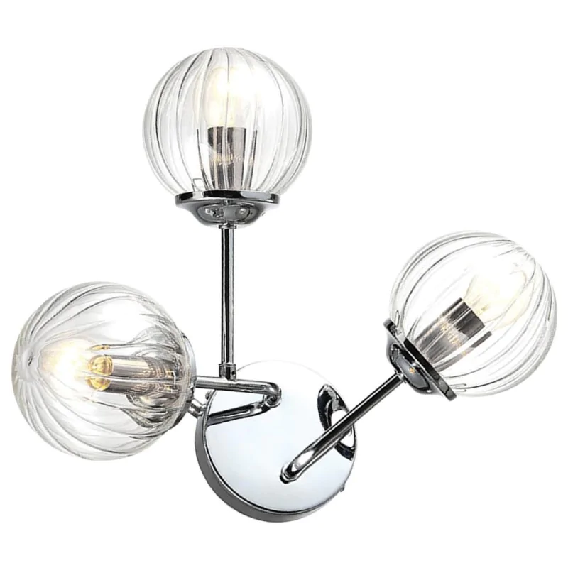 Materiał wykonania: podstawa stalowa, klosz szklany. Kolor podstawy: chromowy. Wysokość: 30. Szerokość: 42. Głębokość: 20. Wymiary (wys. x szer. x gł.): 30x42x20. Waga netto: 0,77. Rodzaj trzonka: E14.